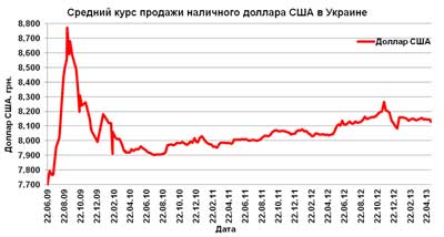 Курс продажи безналичного доллара США на прошлой неделе повысился на 0,46% до 8,157 грн., средний курс продажи наличного – на 0,45% до 8,165 грн. Средний дневной объем торгов долларами на межбанковском рынке составил 815 млн. долларов. Рост стоимости доллара в Украине был вызван увеличением спроса на валюту после праздничных дней и возобновлением активности бизнеса.
