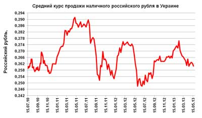 Курс продажи безналичного рубля в Украине за прошедшую неделю понизился на 0,04% до 0,259 грн., средний курс продажи – на 0,69% до 0,261 грн. Причиной удешевления российской валюты стало укрепление доллара США на международном рынке на фоне решимости мировых центральных банков смягчать денежно-кредитную политику.